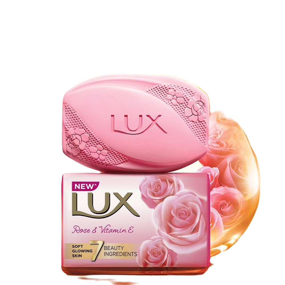 New LUX Rose & Vitamin E body soap, infused with French Rose flower extracts, effectively removes dirt and sweat, leaving skin soft, smooth, and moisturized.